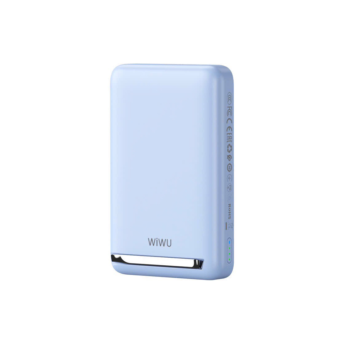 Модель Wi-P043 має зручний та функціональний дизайн з підставкою, яка дозволяє ставити телефон у двох положеннях — горизонтальному та вертикальному. Це робить пристрій ідеальним для роботи або перегляду мультимедіа під час зарядки. Виділена зона під MagSafe забезпечує точне розташування для бездротової зарядки, що підвищує зручність використання з пристроями Apple. Компактні розміри 105*69*18 мм та варіанти кольорів — чорний, синій, фіолетовий та білий — роблять модель універсальною та стильною, ідеальною для щоденного користування.