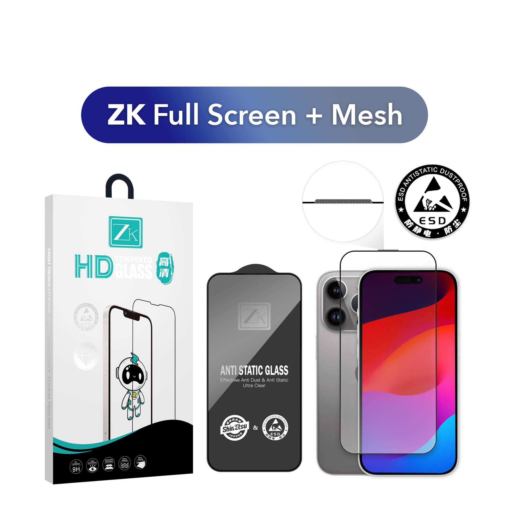 Захисне скло ZK для iPhone 14 Pro/15 2.5D Full Screen