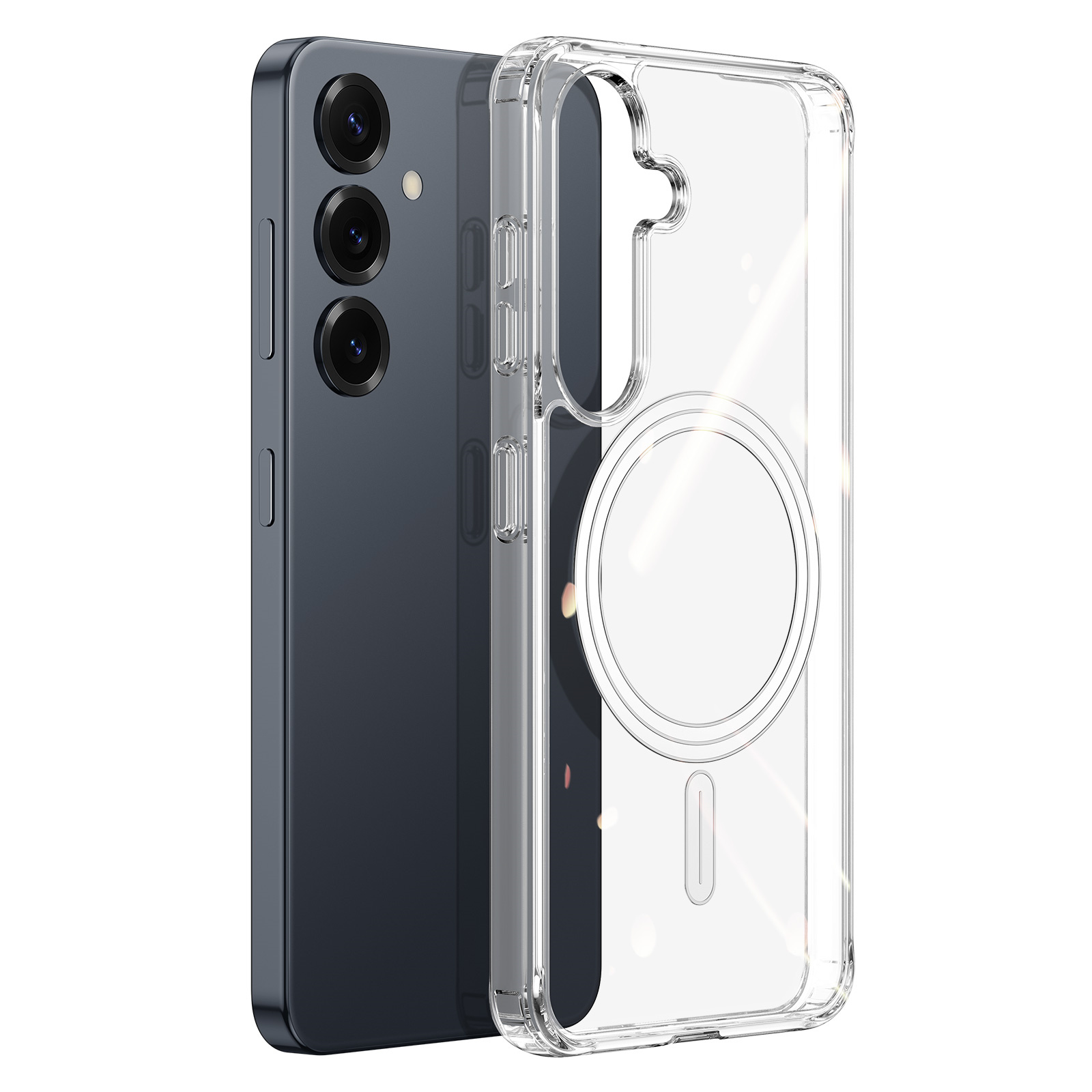 Clin Mag Series поєднує прозору естетику з сучасним функціональним дизайном. Чохол має кришталево чисту задню панель, яка підкреслює оригінальний вигляд смартфона, зберігаючи його стильний вигляд. Завдяки акуратному профілю та продуманим вирізам, чохол щільно охоплює пристрій, не ускладнюючи доступ до елементів керування. Додатковий акцент зроблено на захисті — кути підсилені спеціальними елементами для поглинання ударів, а виступ навколо блоку камер мінімізує ризик пошкоджень при контакті з поверхнею.